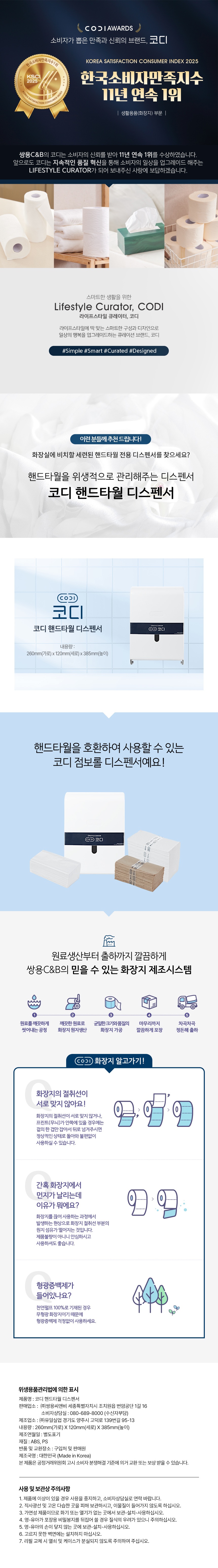 ■ 품명 및 모델명 : 코디 핸드타월 디스펜서(260*120*385mm)