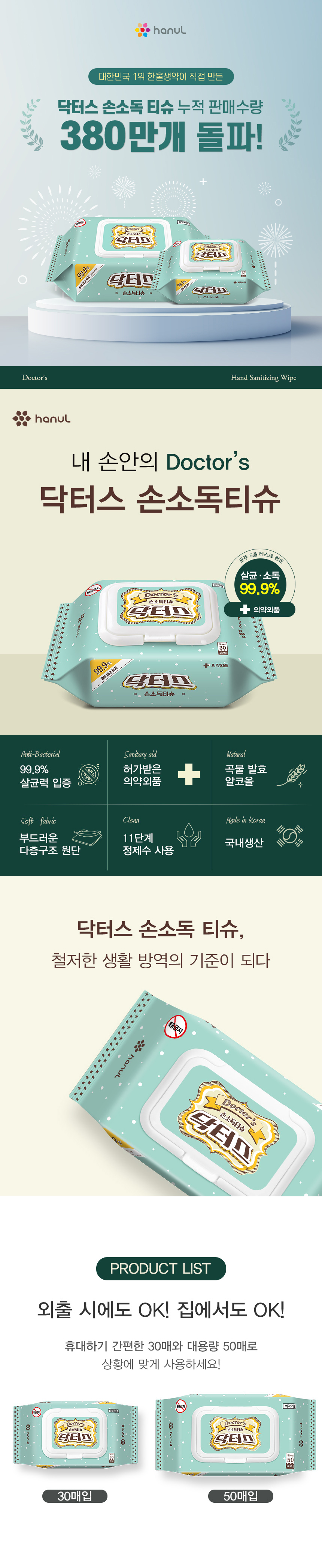 ■ 품명 및 모델명 : 닥터스 에탄올 62% 손소독 티슈 휴대 캡 30매(90*40*70mm)