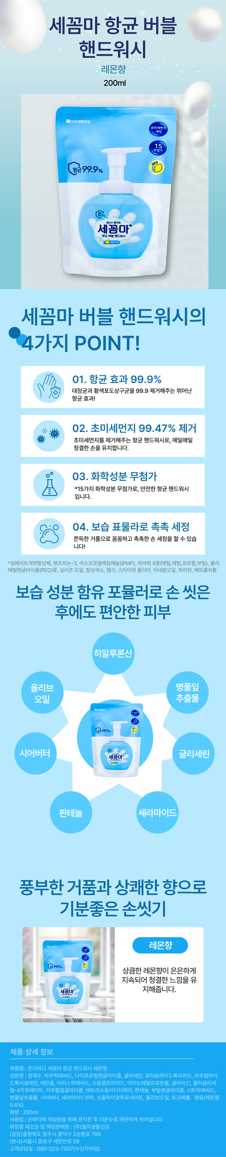 ■ 품명 및 모델명 : 세꼼마 버블항균 핸드워시 200ml 리필 레몬(LG생활건강)