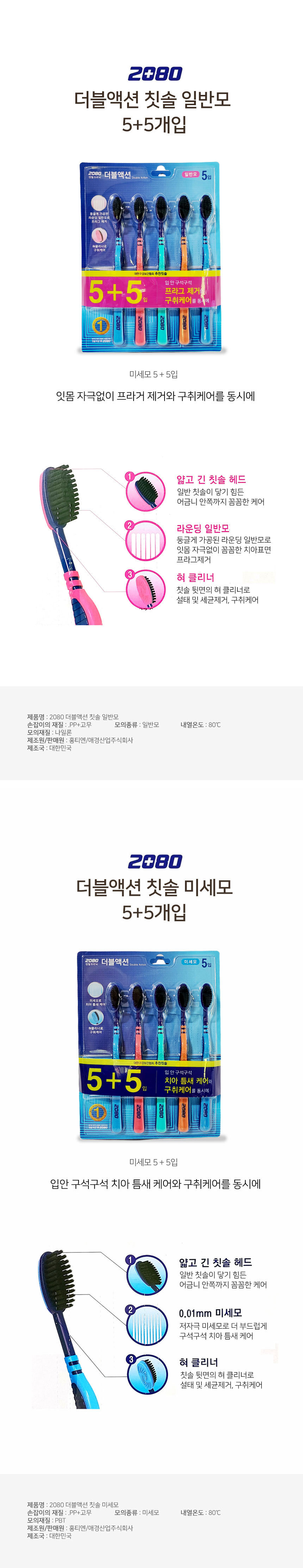 ■ 품명 및 모델명 : 2080 더블액션칫솔 5+5입(미세모)(130*60*80mm)