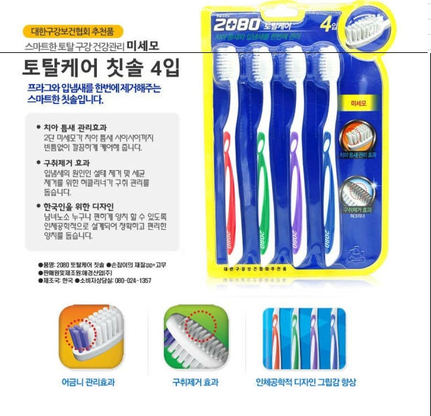 ■ 품명 및 모델명 : 2080토탈케어칫솔 4입 미세모(130*50*185mm)