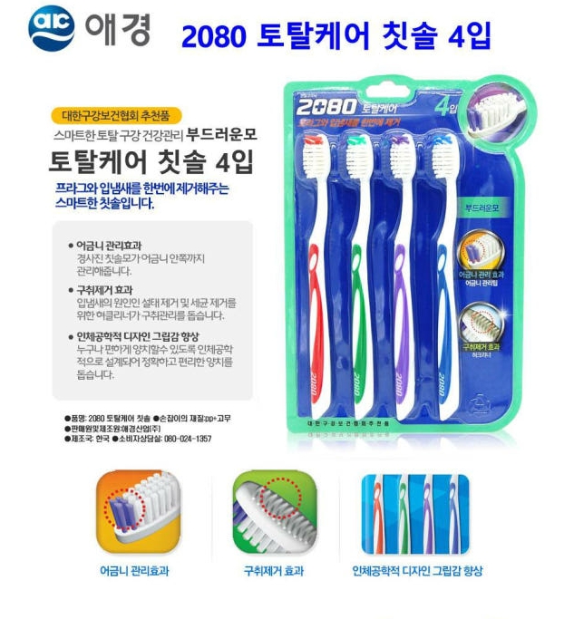 ■ 품명 및 모델명 : 2080토탈케어칫솔 4입 부드러운모(130*50*185mm)