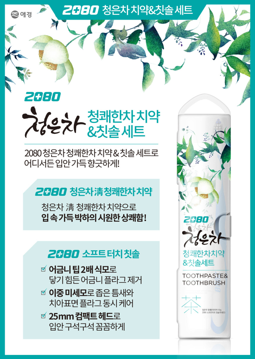 2080 청은차 청쾌한차치약 & 칫솔 세트(40*40*190mm)/개