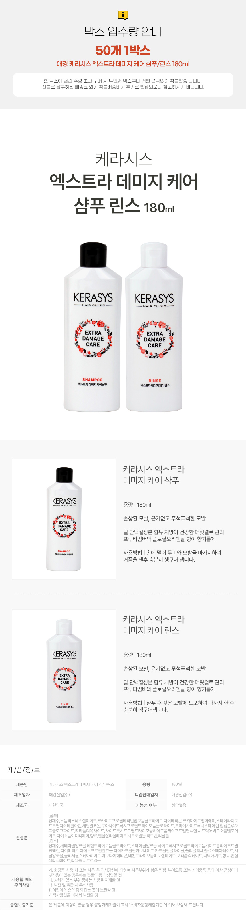 ■ 품명 및 모델명 : 애경 케라시스 엑스트라 데미지 케어 휴대용 린스 180ml(60*110*40mm)