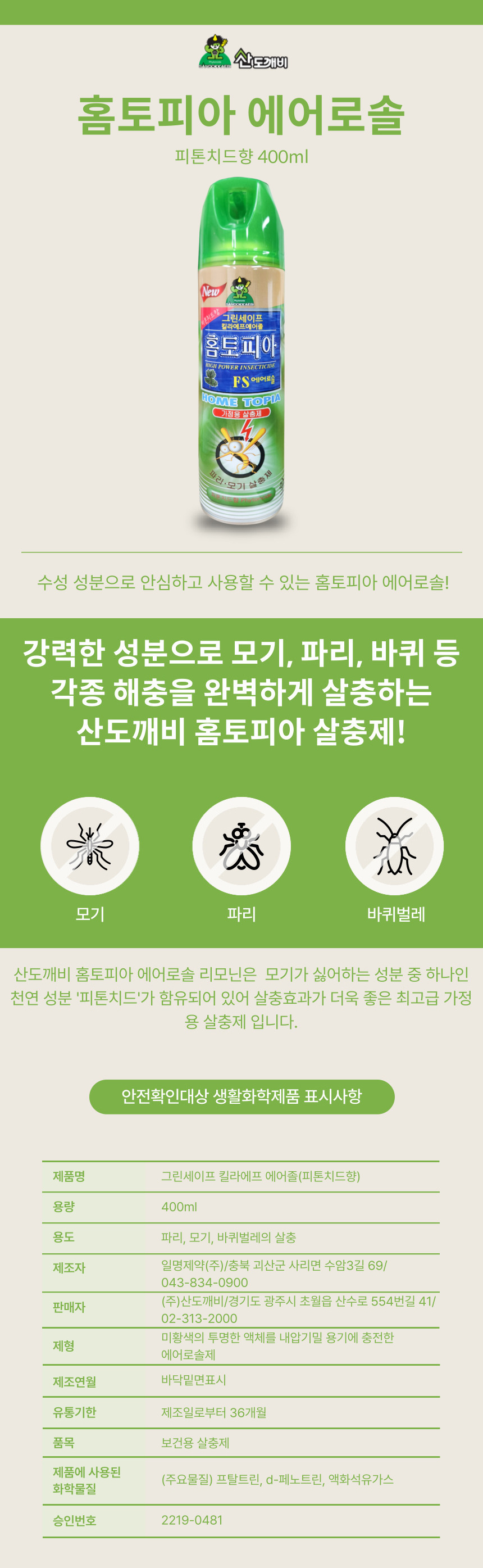 ■ 품명 및 모델명 : 홈토피아 모기 에어졸(파톤치드/400ml)