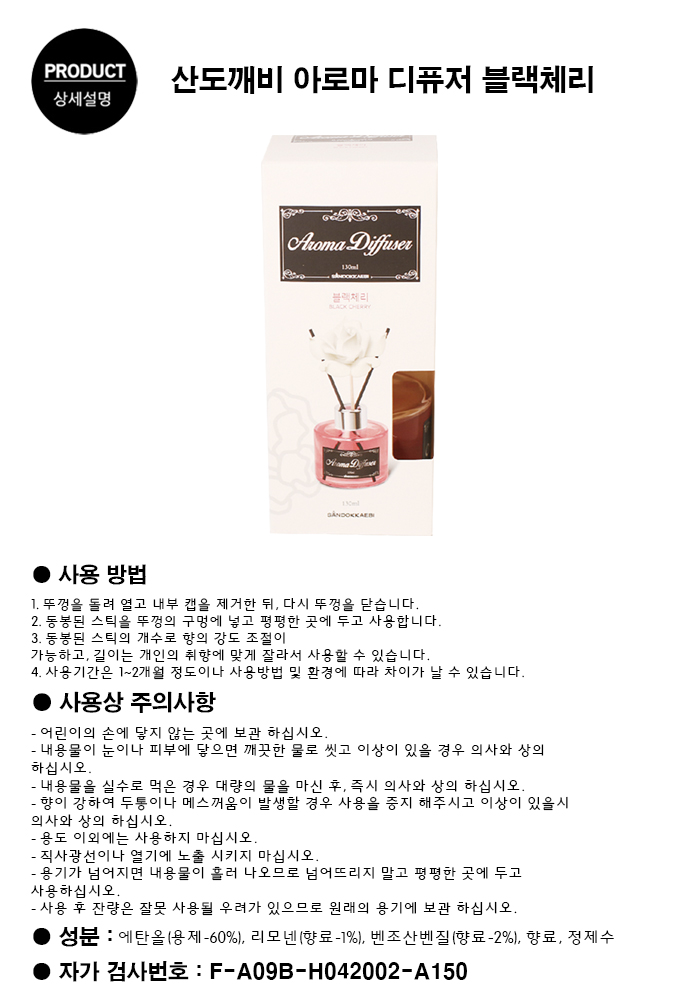 ■ 품명 및 모델명 : 산도깨비 아로마디퓨저 블랙체리 130ml