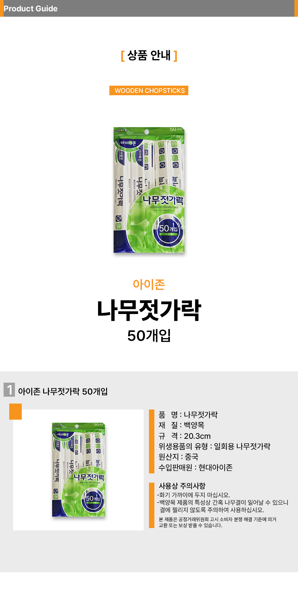 ■ 품명 및 모델명 : 나무젓가락 50매 20cm