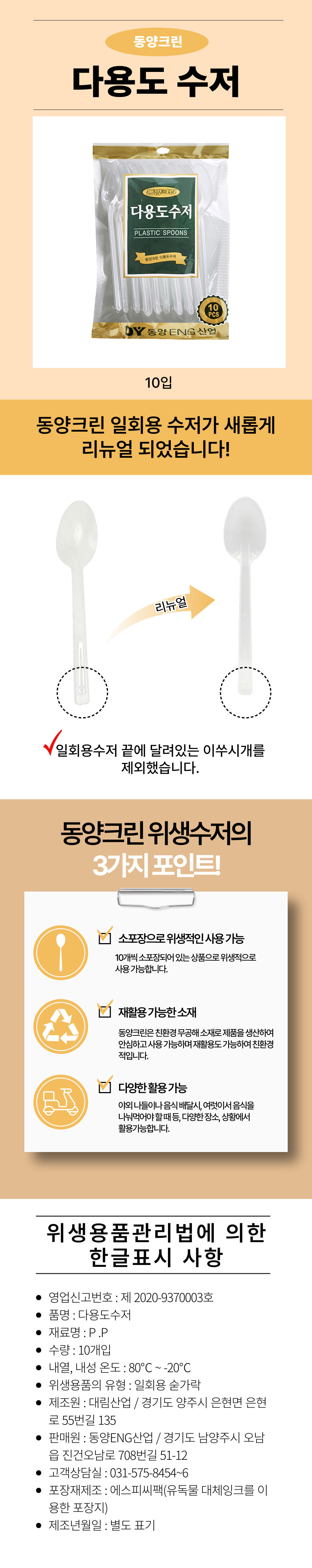 ■ 품명 및 모델명 : 동양 일회용위생수저L18cm/10개입