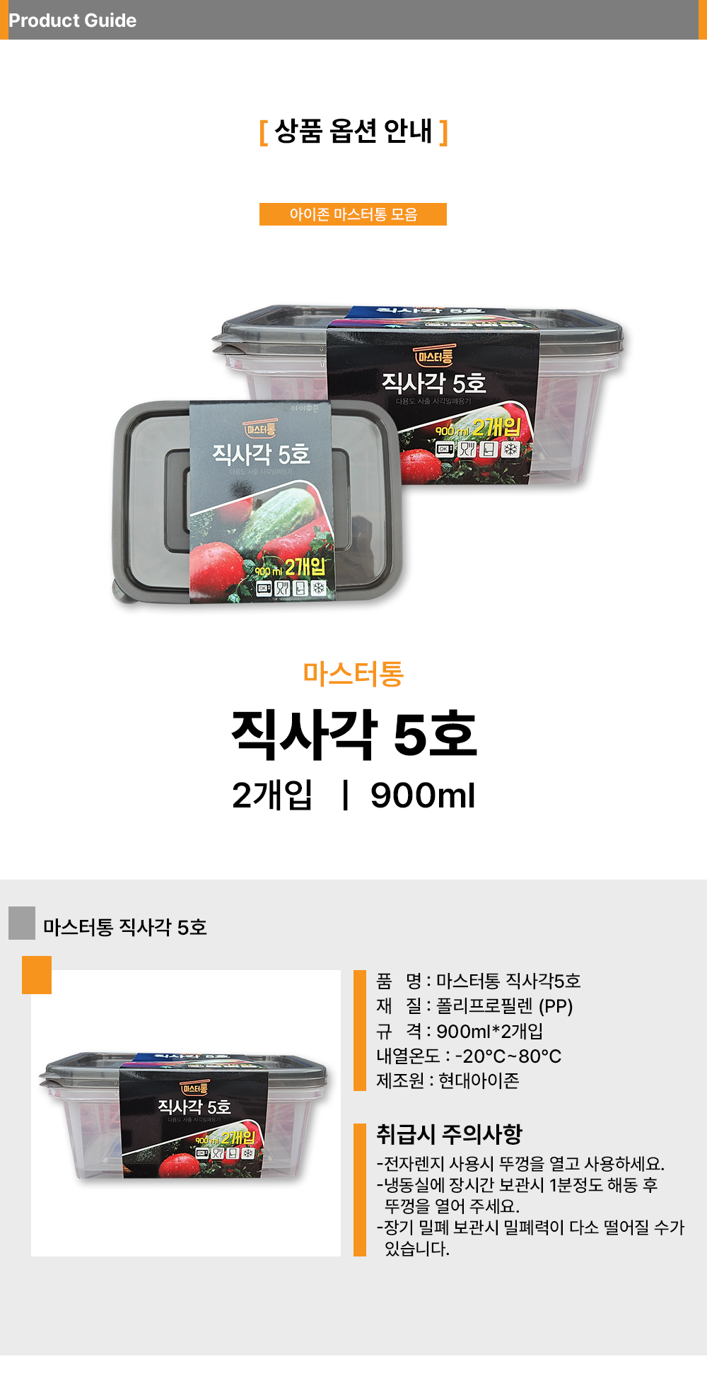 ■ 품명 및 모델명 : 밀폐용기 직사각5호 2p(900ml/18.5*13.3*6.5cm)