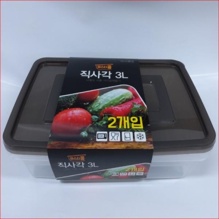 밀폐용기 직사각 3리터 2p(3000ml/30*21*8cm)/묶음