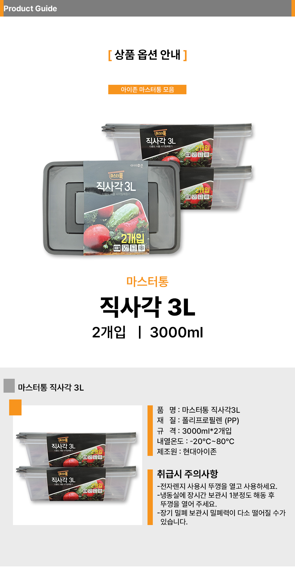 ■ 품명 및 모델명 : 밀폐용기 직사각 3리터 2p(3000ml/30*21*8cm)
