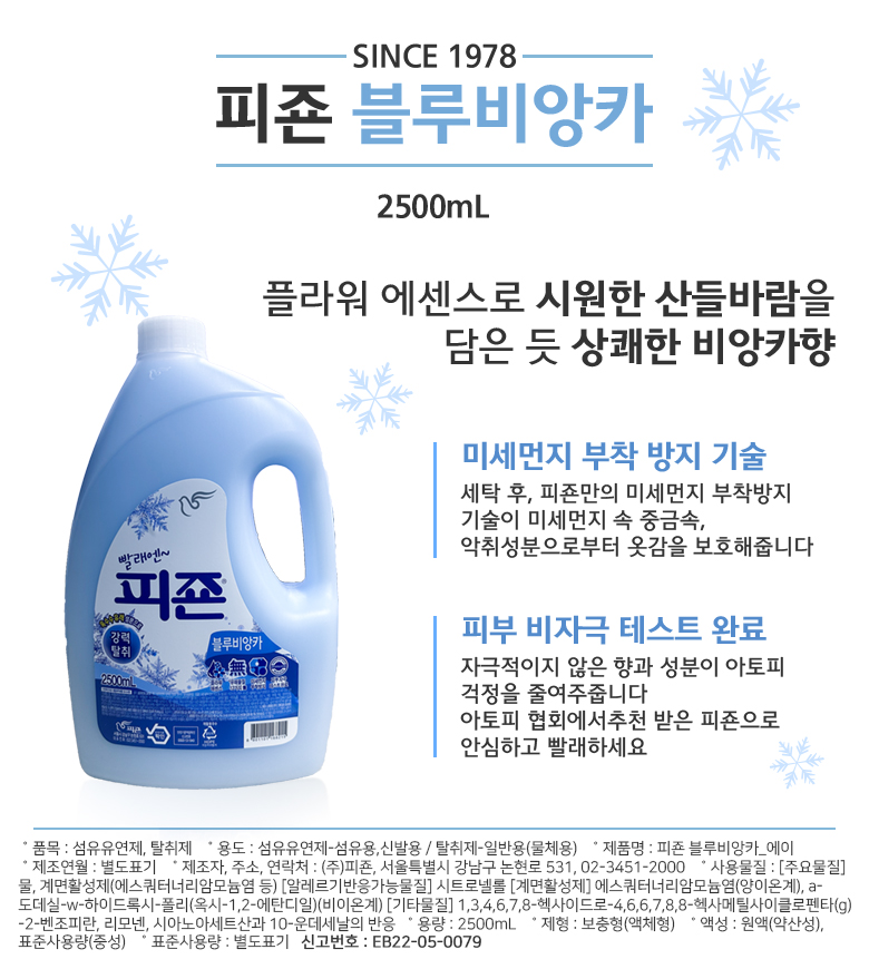 ■ 품명 및 모델명 : 피죤 2500ml 섬유탈취제 비앙카브리즈(블루비앙카)