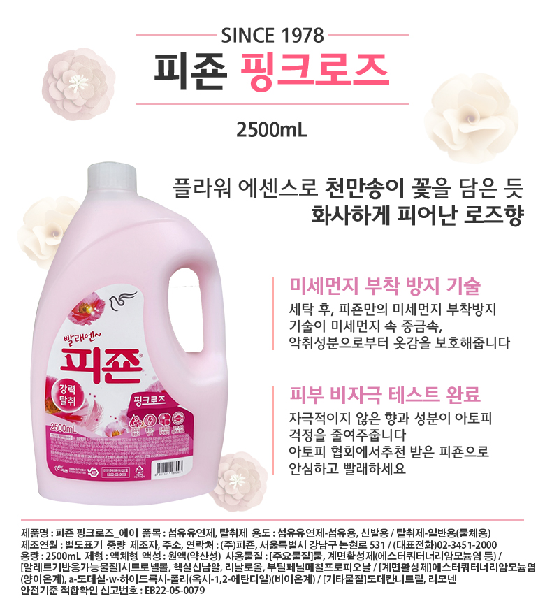 ■ 품명 및 모델명 : 피죤 2500ml 섬유탈취제 로즈블라썸(핑크로즈)