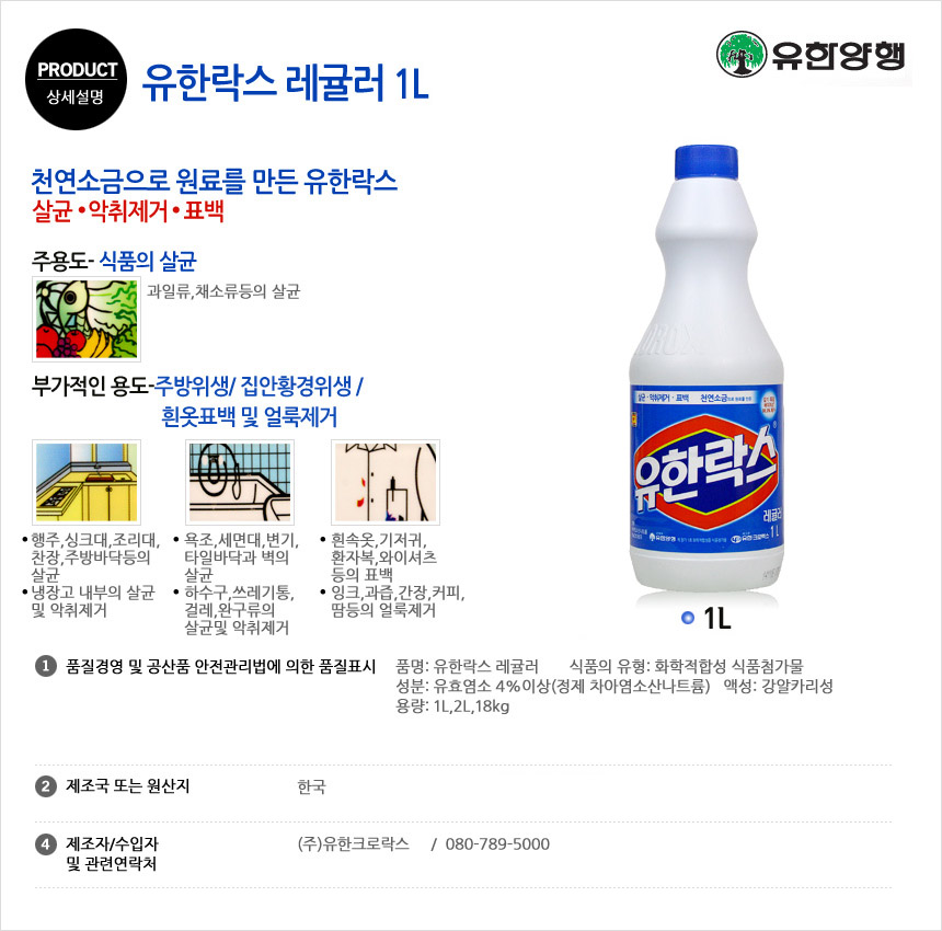 ■ 품명 및 모델명 : [업체배송]유한락스 레귤러 1kg 1박스(12입)
