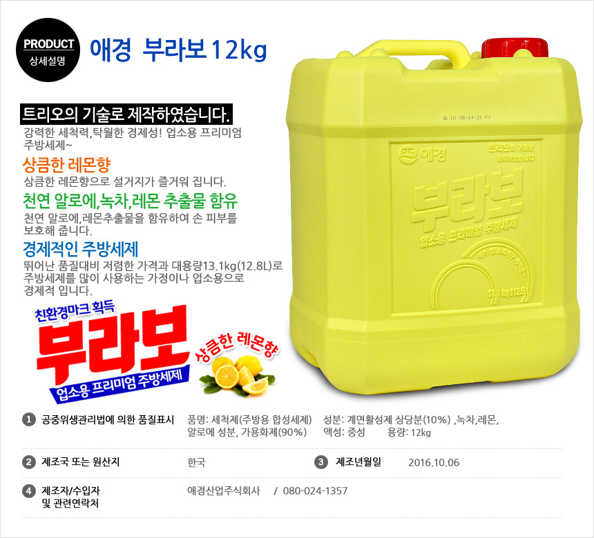 ■ 품명 및 모델명 : [업체배송]애경 부라보 12kg 말통세제