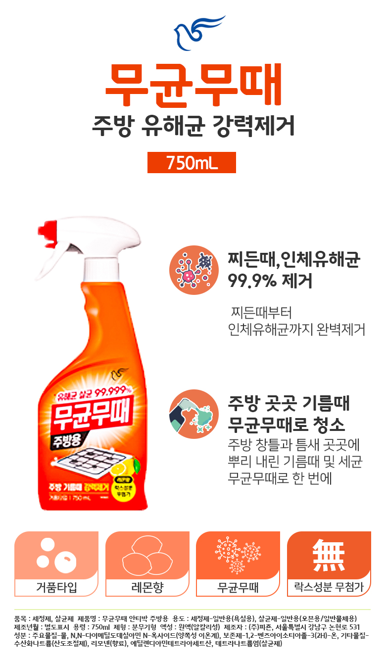 ■ 품명 및 모델명 : 피죤 무균무때 주방용 750ml