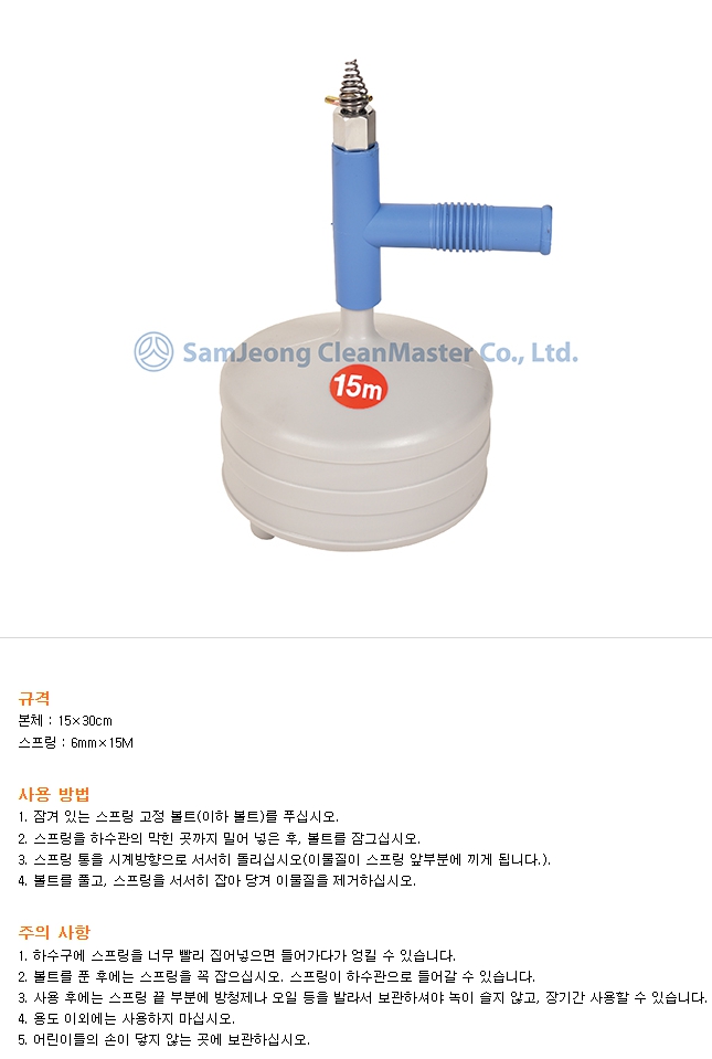 ■ 품명 및 모델명 : [업체배송]배수구 청소용 스프링 560128 15M 삼정크린마스터