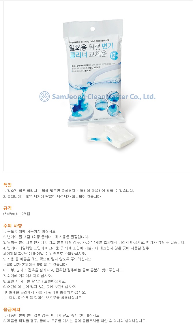 ■ 품명 및 모델명 : [업체배송]일회용 위생 변기 클리너 리필 270232 삼정크린마스터