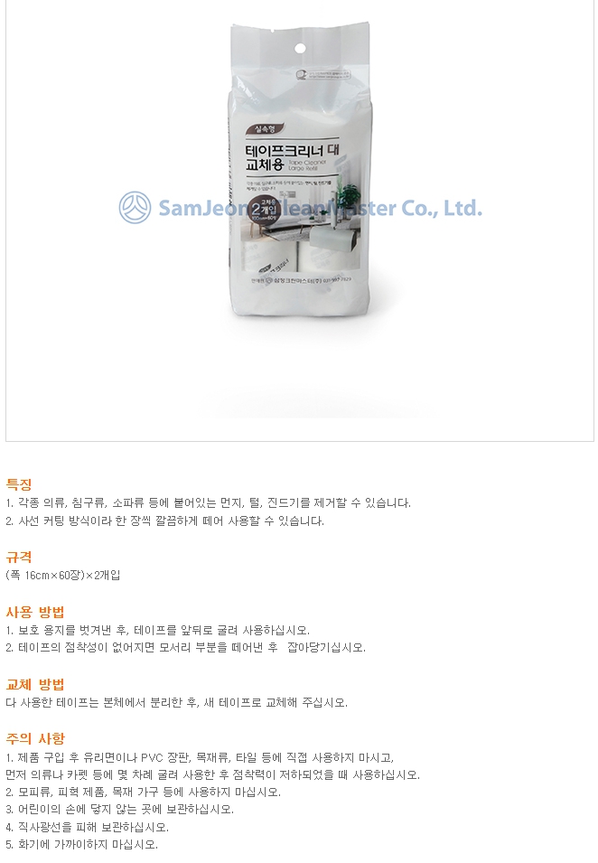 ■ 품명 및 모델명 : [업체배송]실속형 테이프크리너 대형 리필 133964 16cmx60매 2개입 삼정크린마스터