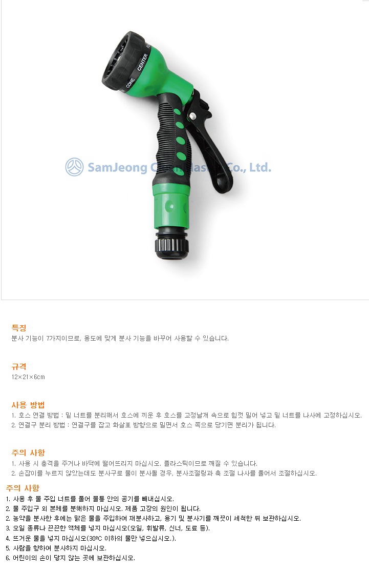 ■ 품명 및 모델명 : [업체배송]분사기 7가지 기능 300434 삼정크린마스터