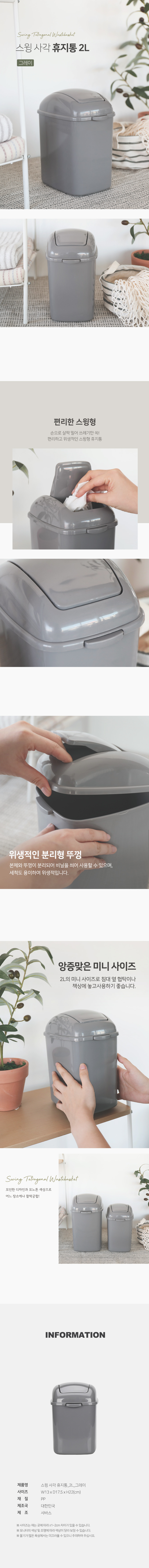 스윙 사각 휴지통 2L(그레이/샤바스)/개