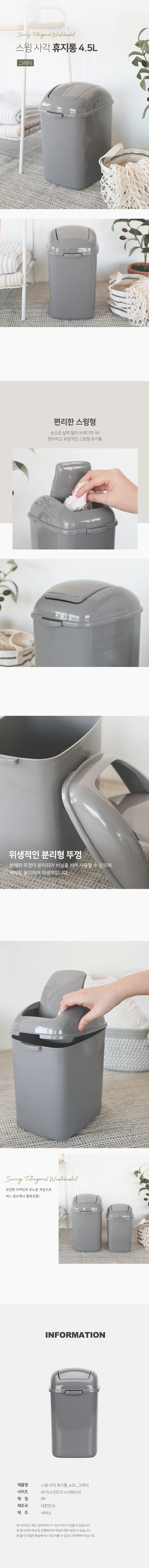스윙 사각 휴지통 4.5L(그레이/샤바스)/개