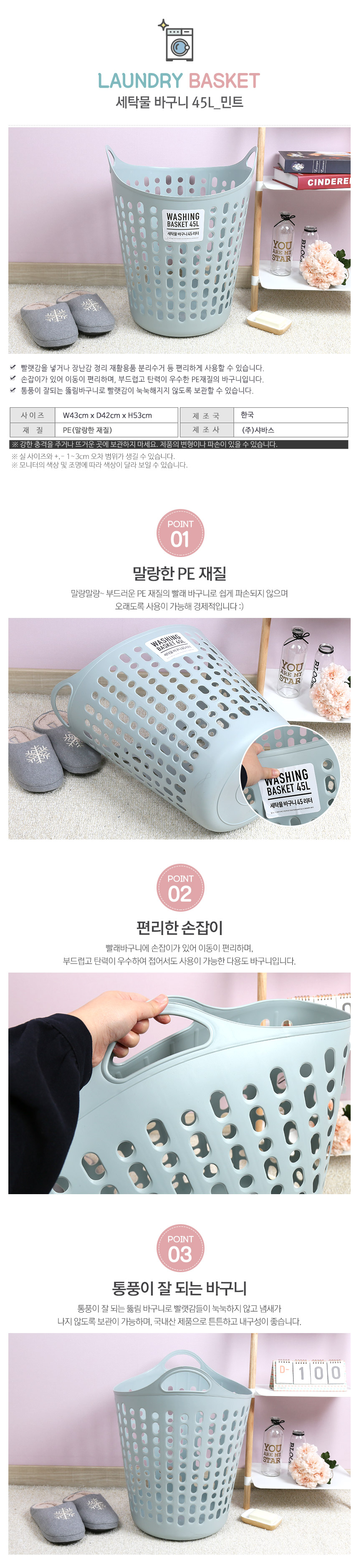 ■ 품명 및 모델명 : 세탁물 바구니 45L(민트/샤바스)
