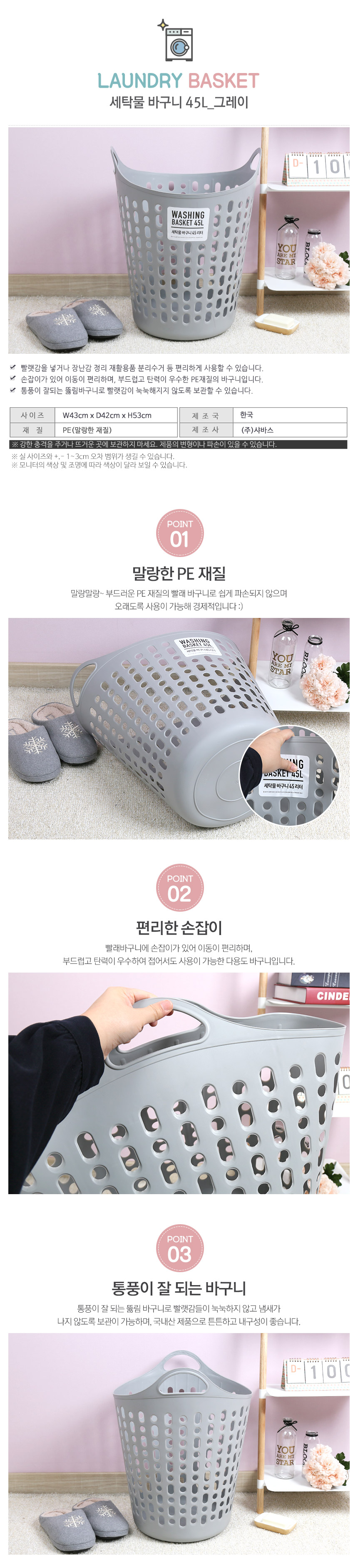 ■ 품명 및 모델명 : 세탁물 바구니 45L(그레이/샤바스)