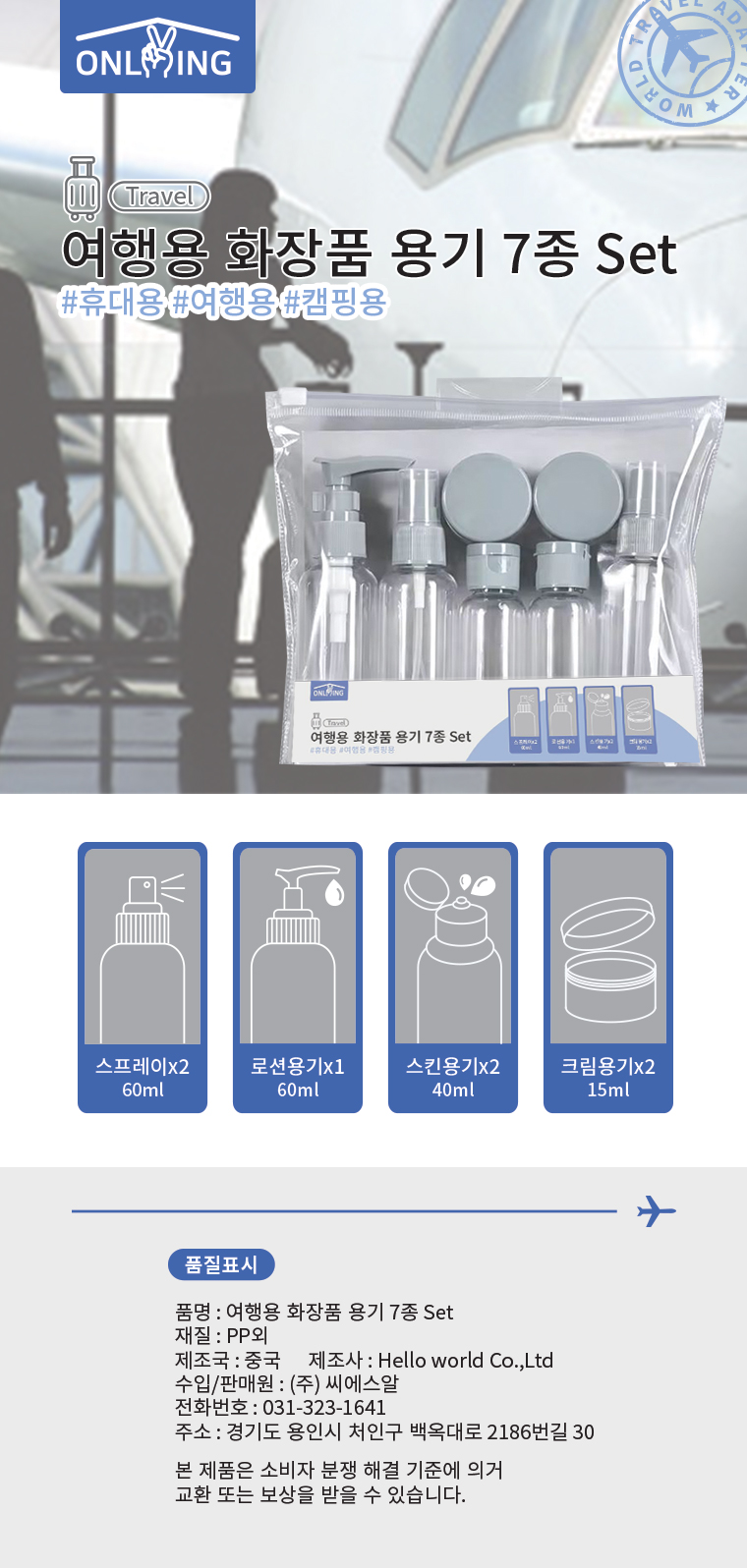 ■ 품명 및 모델명 : [업체배송]여행용 용기7종세트(135*110*150)