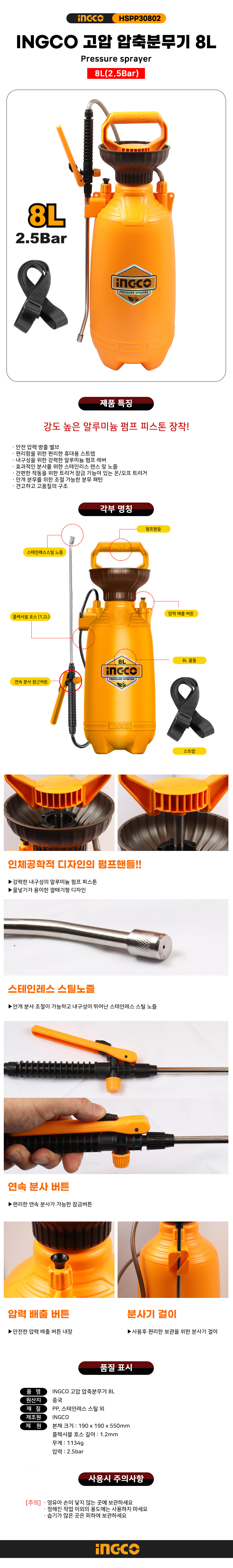 ■ 품명 및 모델명 : INGCO 고압 압축분무기 8L