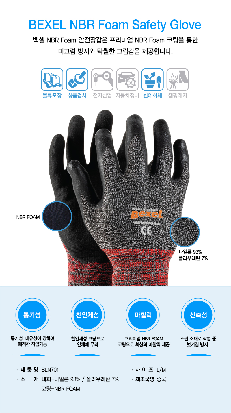 ■ 품명 및 모델명 : 벡셀 NBR 안전장갑 701L