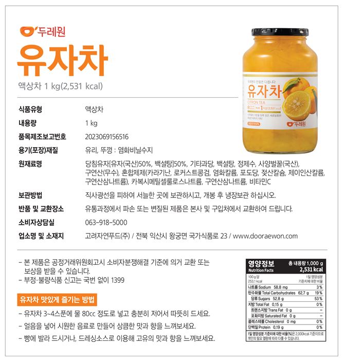 꿀유자차(1kg/8입/고려자연제품)_병제품/개