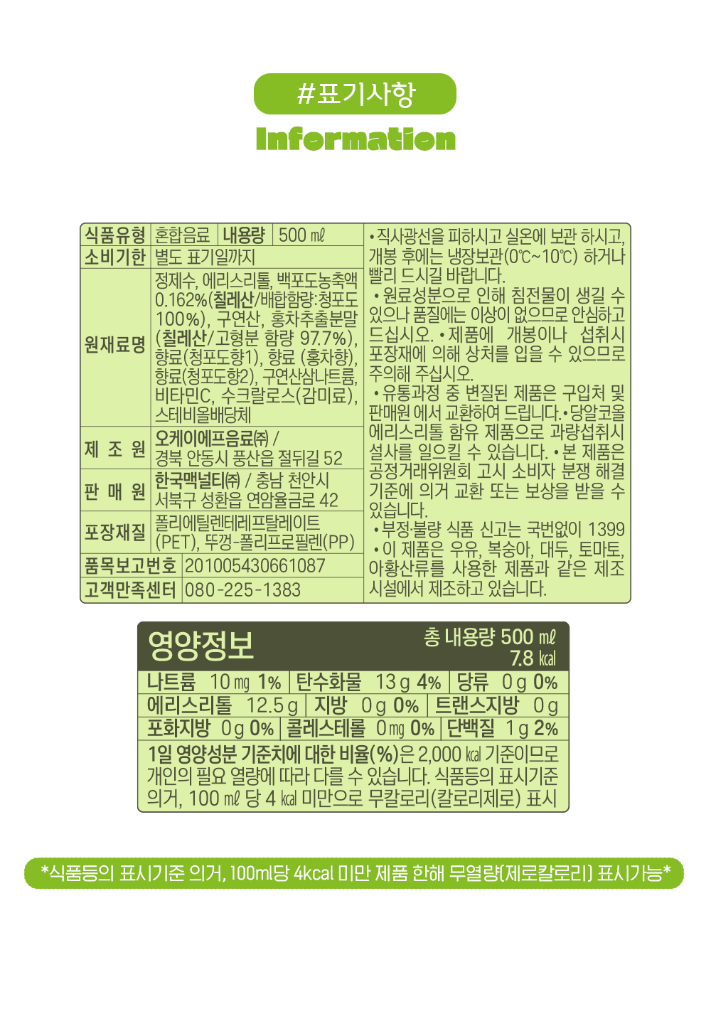 아이스티 제로 청포도(500mℓ/오케이에프음료)/개