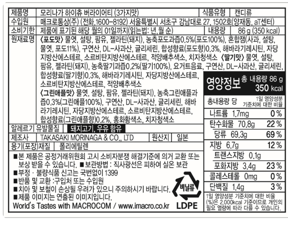 모리나가 하이츄 프리미엄 포도(35g)/개