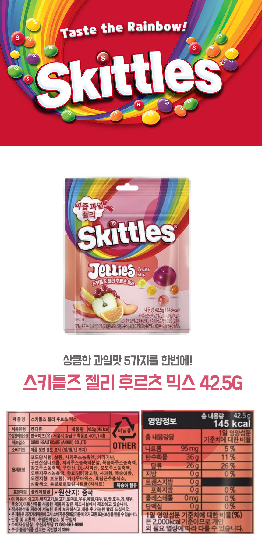 스키틀즈 젤리 믹스후르츠(42.5g/한국마즈)/개