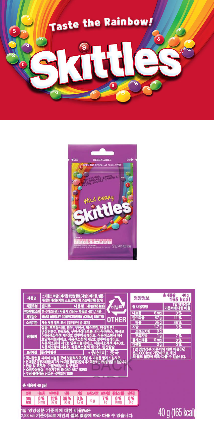 스키틀즈 와일드베리(40g/한국마즈)/개