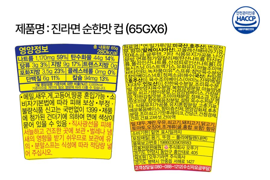 [업체별도배송]진라면 순한맛(65g/6개/오뚜기)/박스