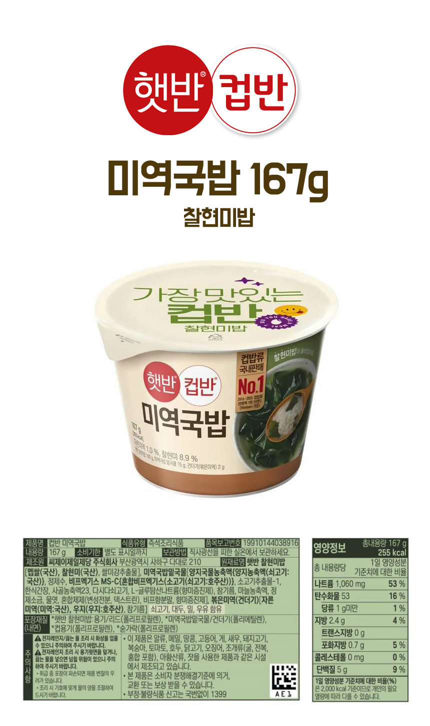 [업체별도배송]햇반 컵반 미역국밥(167g/24개/CJ)/박스