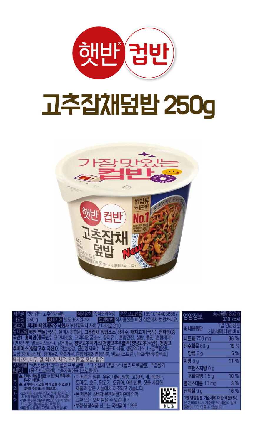 [업체별도배송]햇반 컵반 고추잡채덮밥(250g/24개/CJ)/박스