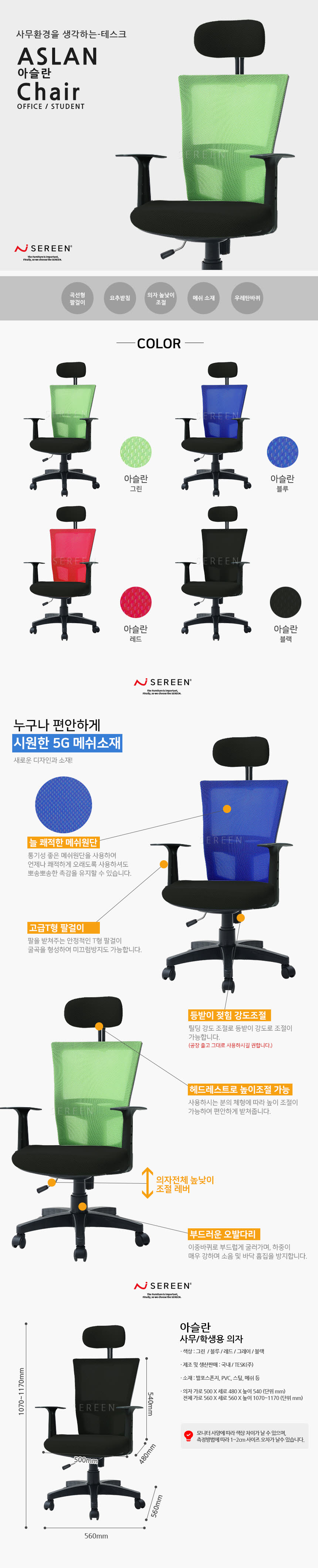 [업체별도배송]사무용의자 아슬란의자/개